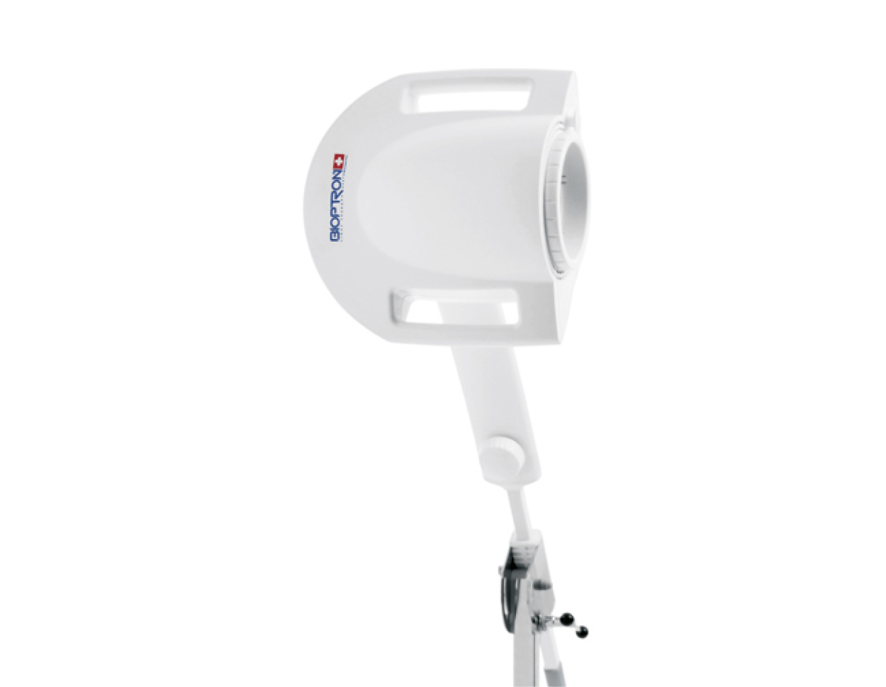Das Gerät ist entweder mit einem praktischen Boden- bzw. mit einem ergonomischen Tisch-Stativ erhältlich und gestattet so den flexiblen Einsatz in häuslichen oder professionellen Umgebungen. Die mühelos verstellbare Höhe und Kopfneigung sowie die Möglichkeit des Drehens des Gerätekopfs um 360° ermöglichen eine bequeme Anwendung in fast jeder Position. Die Behandlungen können über eine Bedientafel mühelos bis auf einen Mindestwert von 30 Sekunden programmiert werden. Ein eingebauter Abstandshalter sorgt für den empfohlenen Abstand zur behandelten Hautoberfläche. Das Tisch-Stativ ist zusätzlich mit einer Staubhülle und einer bequemen Unterlage ausgestattet (desinfizierbar, austauschbar und waschbar).